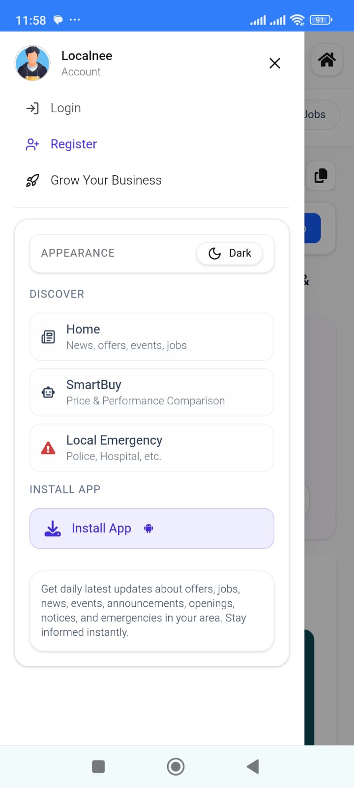 Install Localnee in mobile